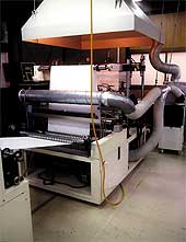 ろ材の強度UP、ピッチ取りの目的でホットメルトの塗布を行います。